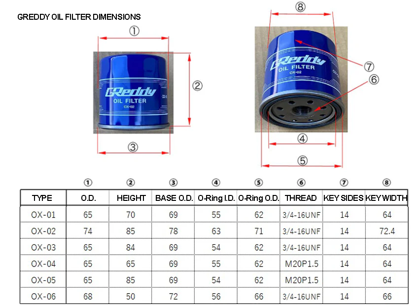 GReddy Sports OX Oil Filters utilize advanced "double pleats" folding technology within the filter to optimize surface area for superior contaminant removal. This durable design is also convenient to remove for use with GReddy Oil, Oil Coolers, and Oil Filter Relocation kits.