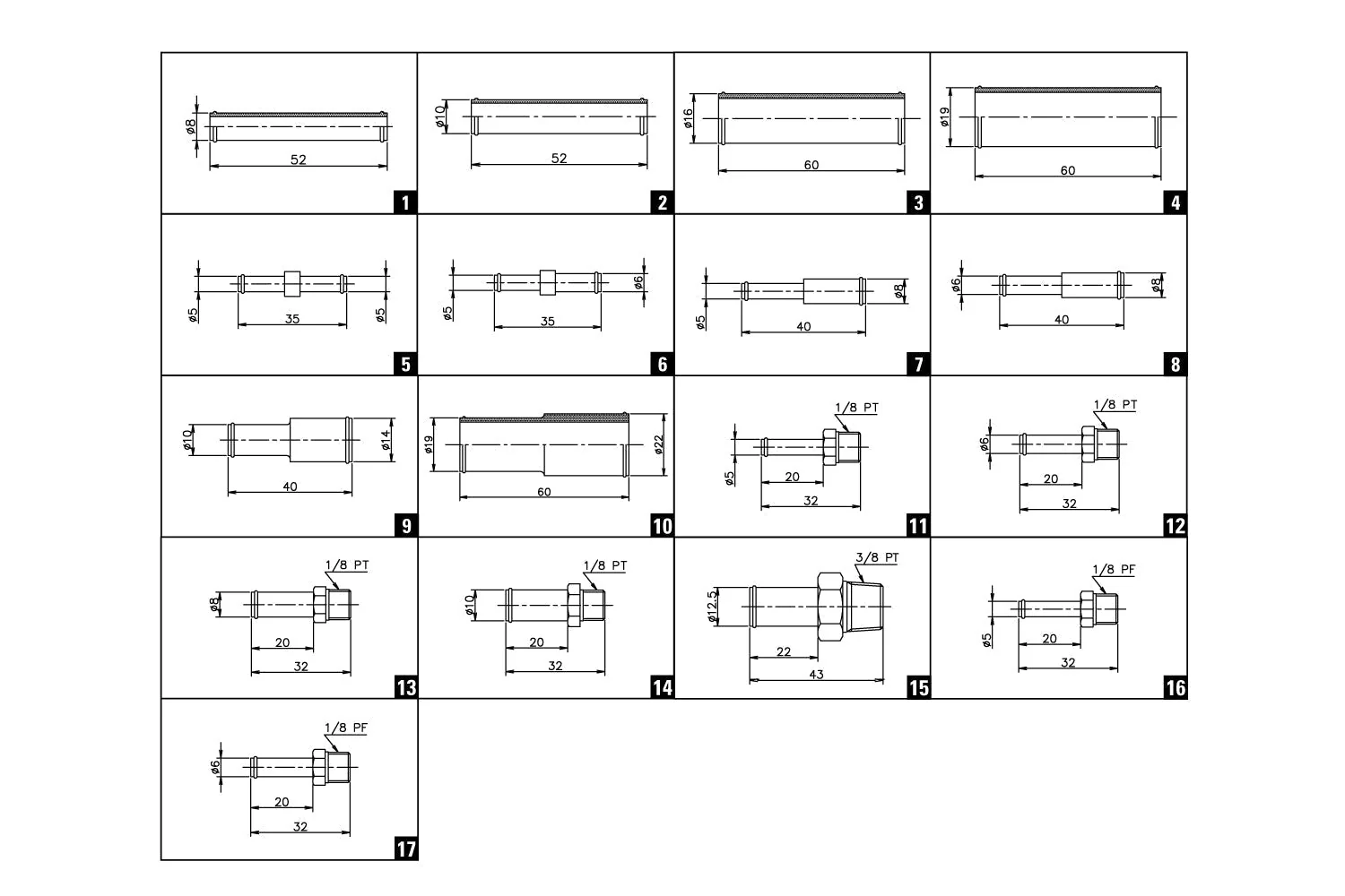 | 10φ-1/8PT | 14 |  | 11900653 | Brass Cr plated |